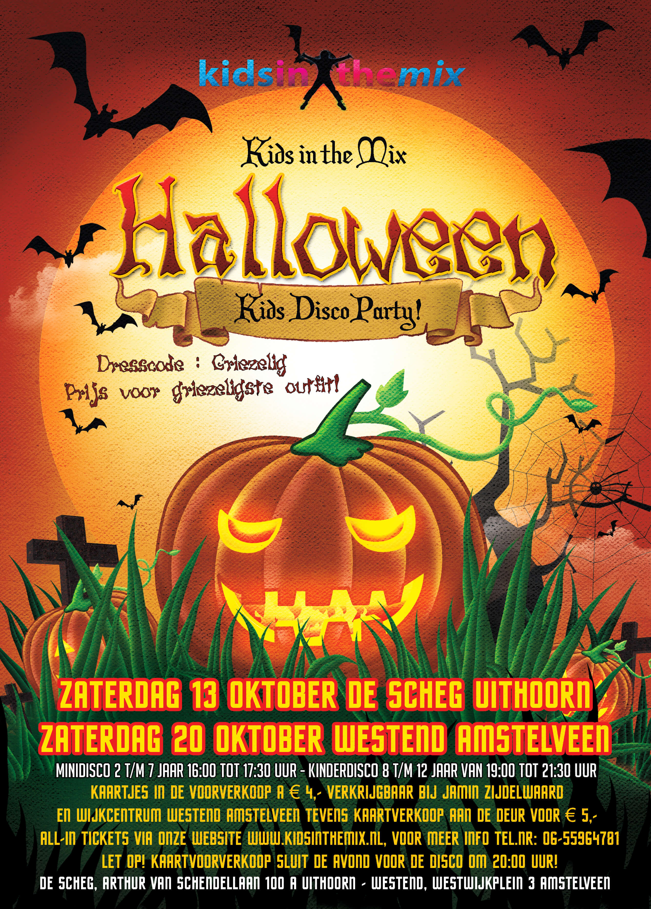Kom jij ook weer naar de leukste, spannendste, grappigste en gezelligste Halloweendisco van Uithoorn en Amstelveen? Hij is er weer! Op 13 Oktober in De Scheg Uithoorn en 20 Oktober in Wijkcentrum Westend Amstelveen. Super leuk als je er ook bij bent, maar koop snel je kaartjes in de voorverkoop want aan de kassa is het VOL=VOL